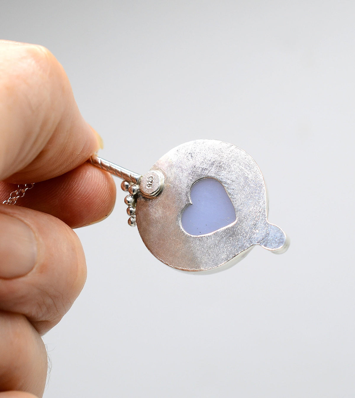 Handmade Blue Chalcedony & Pink Tourmaline Silver Pendant
