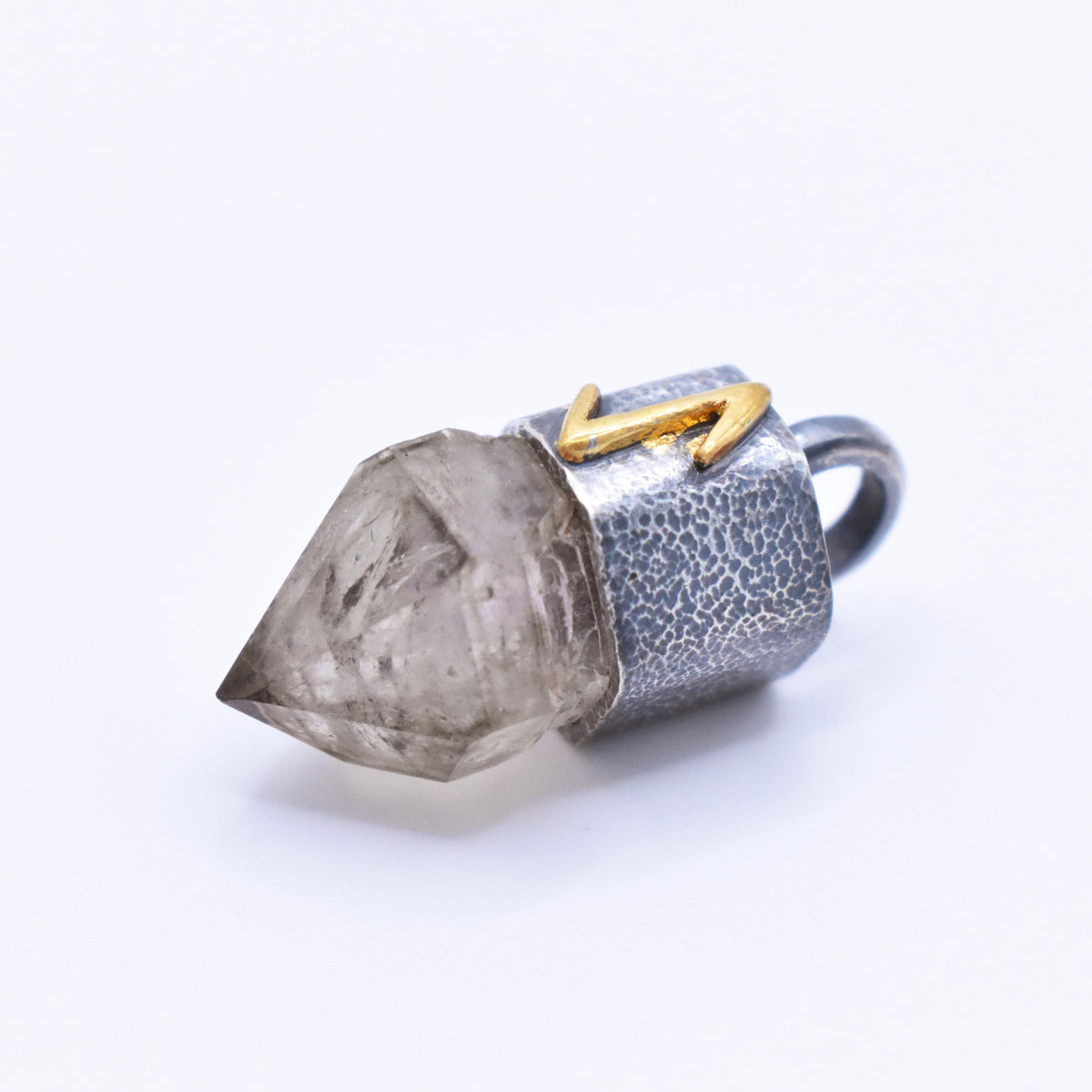 Handmade Brandberg Oxidised and Hammered Fine Silver and 24ct Gold Rune Pendant