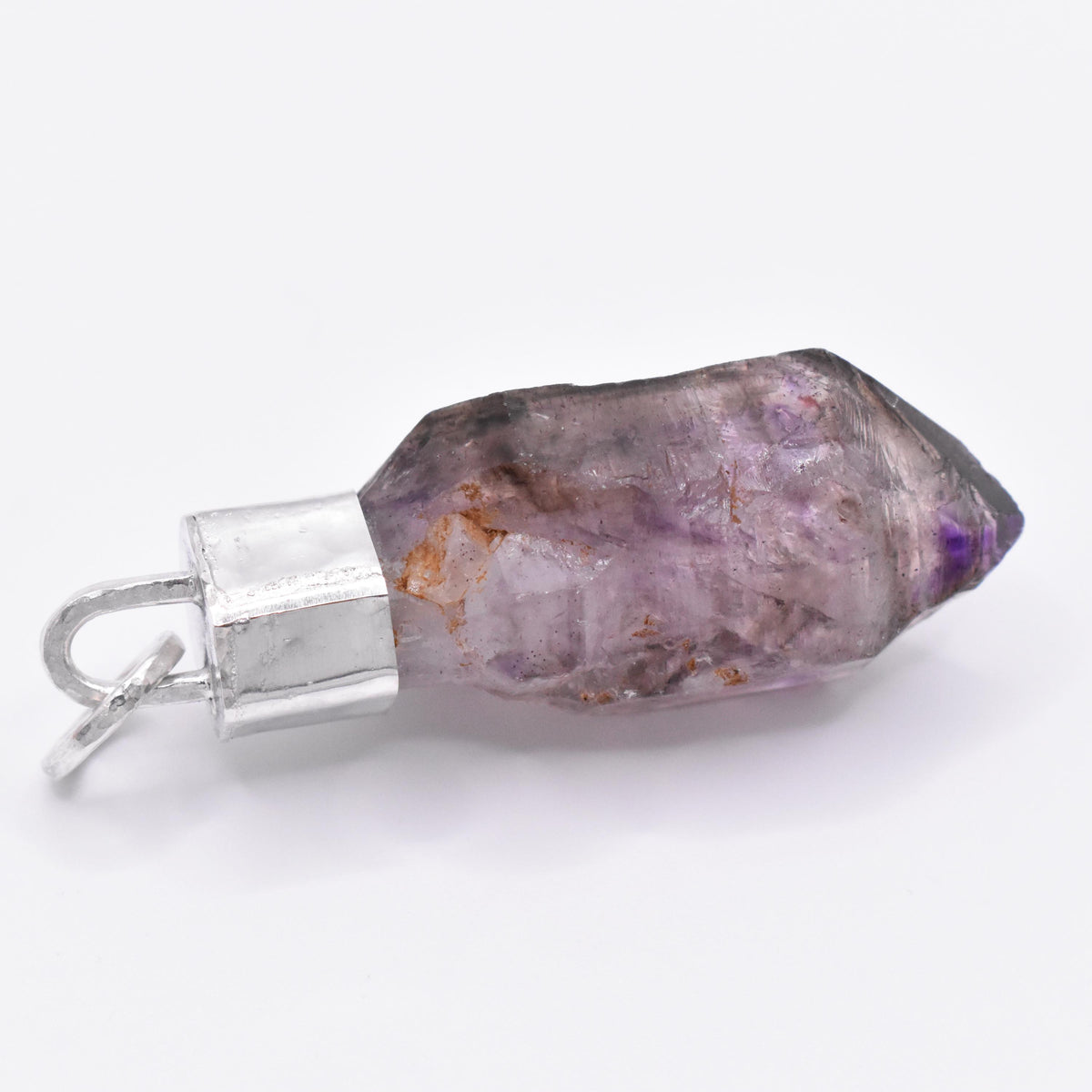 This larger, exceptionally energetic Super 7 Quartz DT has richly coloured Amethyst and Smoky Phantoms. A unique handcrafted Sterling silver pendant.