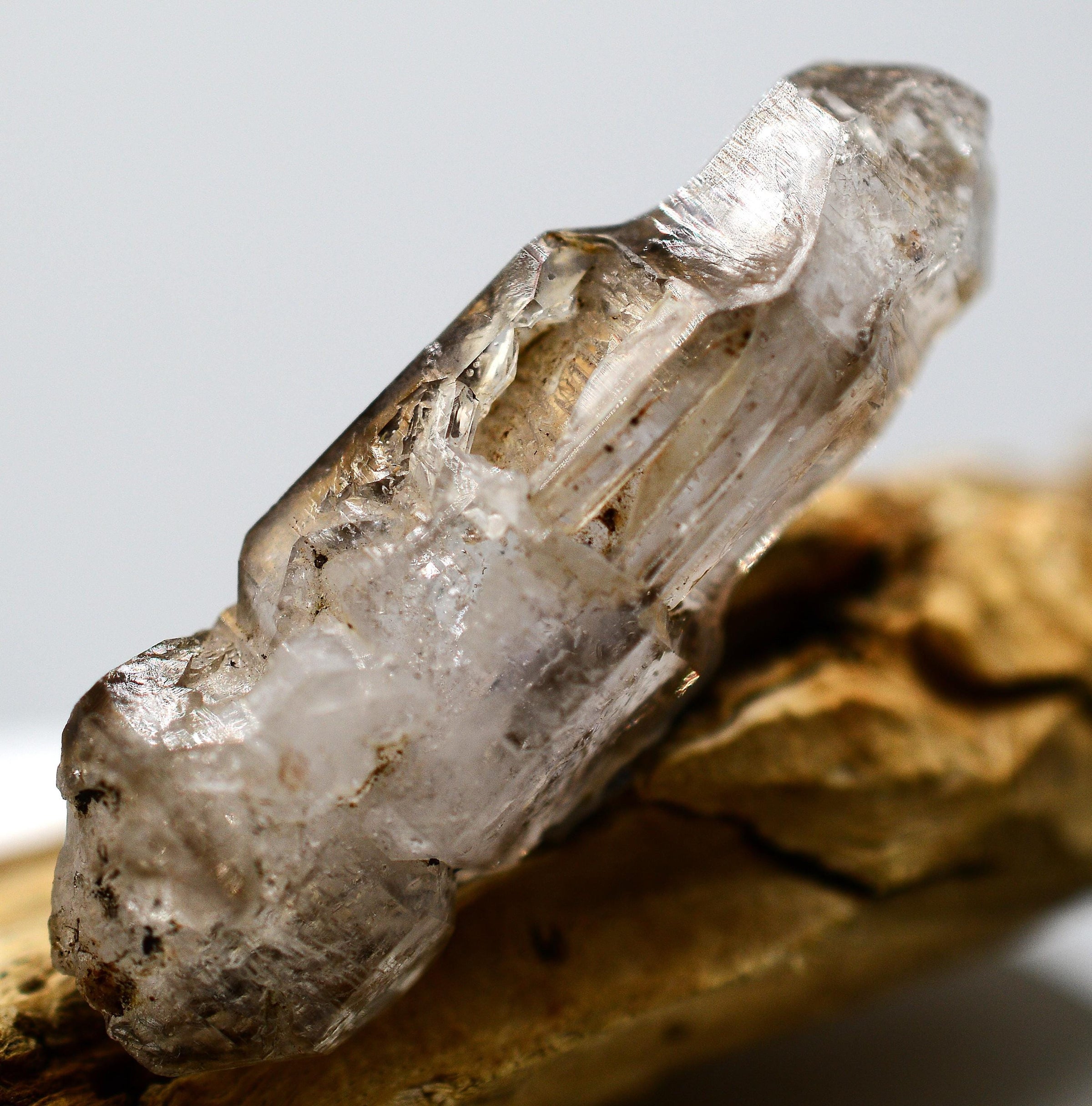 This humble-looking Brandberg is quite unusual. The base is fully self-healed, there are 2 skeletal gateway formations, and a black phantom, clearly seen running up the body of the crystal.
