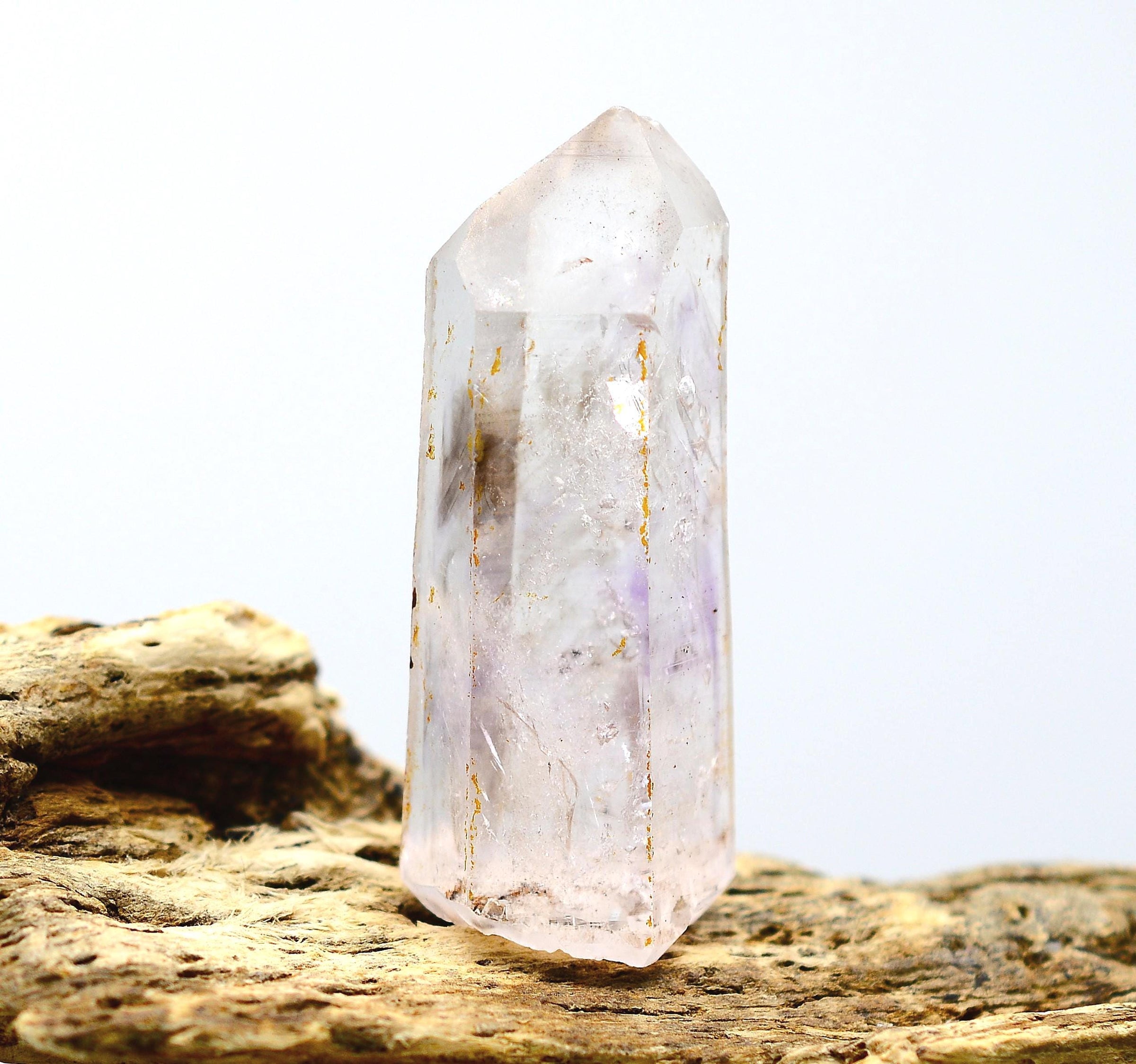 "Brandberg Amethyst is a stunning and unique variety of Quartz crystal found only in Namibia, Africa - a mystic blend of amethyst, clear, and smoky quartz together in one exceedingly high-vibrational crystal. Formed where powerful Earth meridians cross, this mineral is imbued with remarkable phantoms, enhydros, and other rare formations and inclusions. It is a potent talisman. Brandberg Amethyst attunes to pure consciousness and is the most versatile and multi-dimensional healing tool on the planet, unparalleled in its beauty, energy and light.” Judy Hall.