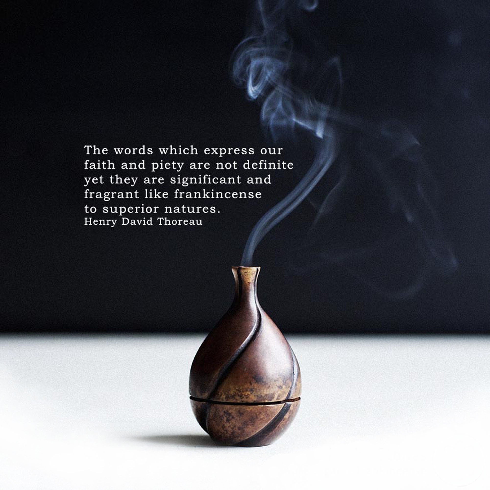 "Frankincense accesses a higher state of consciousness, connecting the individual to a universal spirituality. On a practical level, its ability to still the mind and deepen the breath aids contemplation and meditation. Frankincense, the ancient pathway to prayer, still has the potential to enable the soul to soar.” Frankincense: Oman's Gift to the World, Juliet Highet.