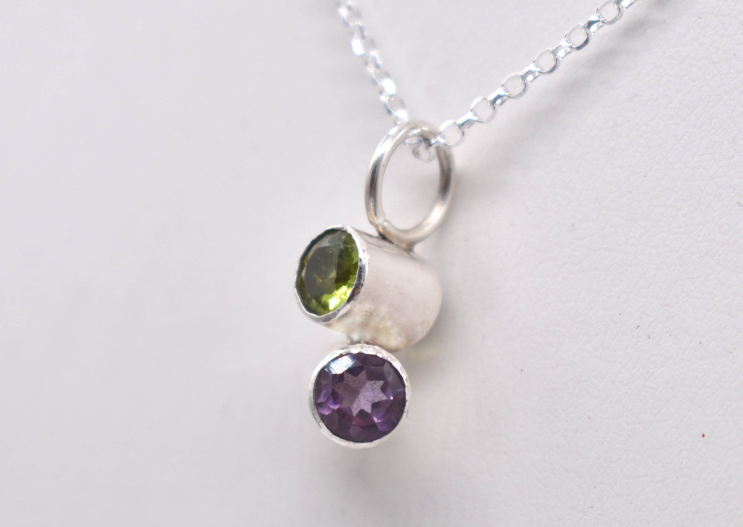 Handmade Amethyst and Peridot Sterling Silver Pendant