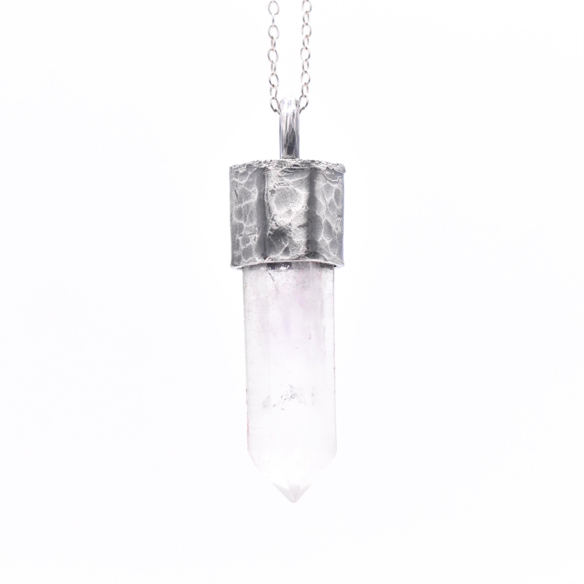 Handmade Brandberg Quartz Oxidised and Hammered Sterling Silver Pendant