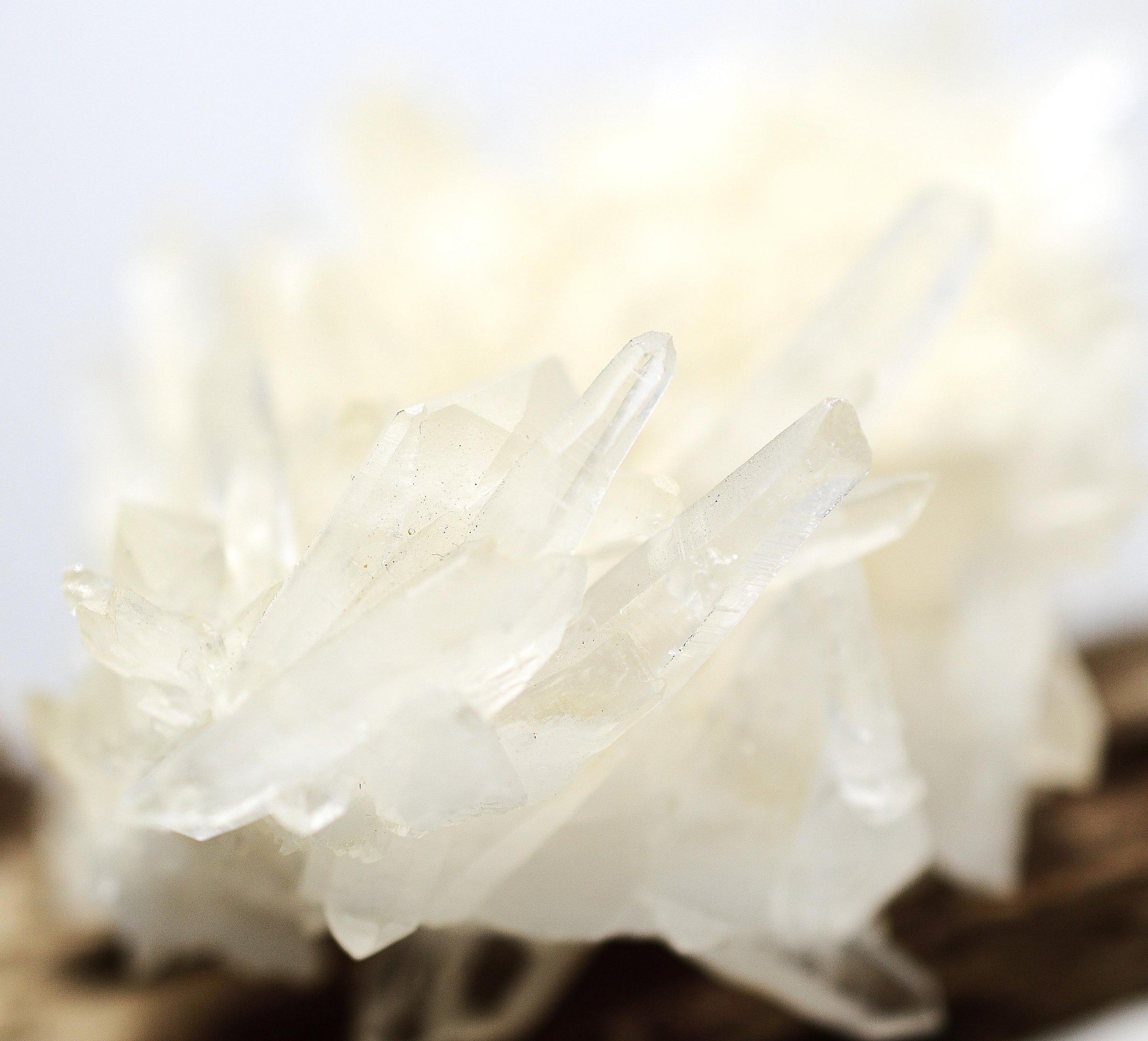 This refined Himalayan star cluster is covered in laser crystals. These get their name from their long, slender form. Other than a small, sparkling section of milky quartz matrix, this amazing cluster is made of dozens of intertwined crystals.