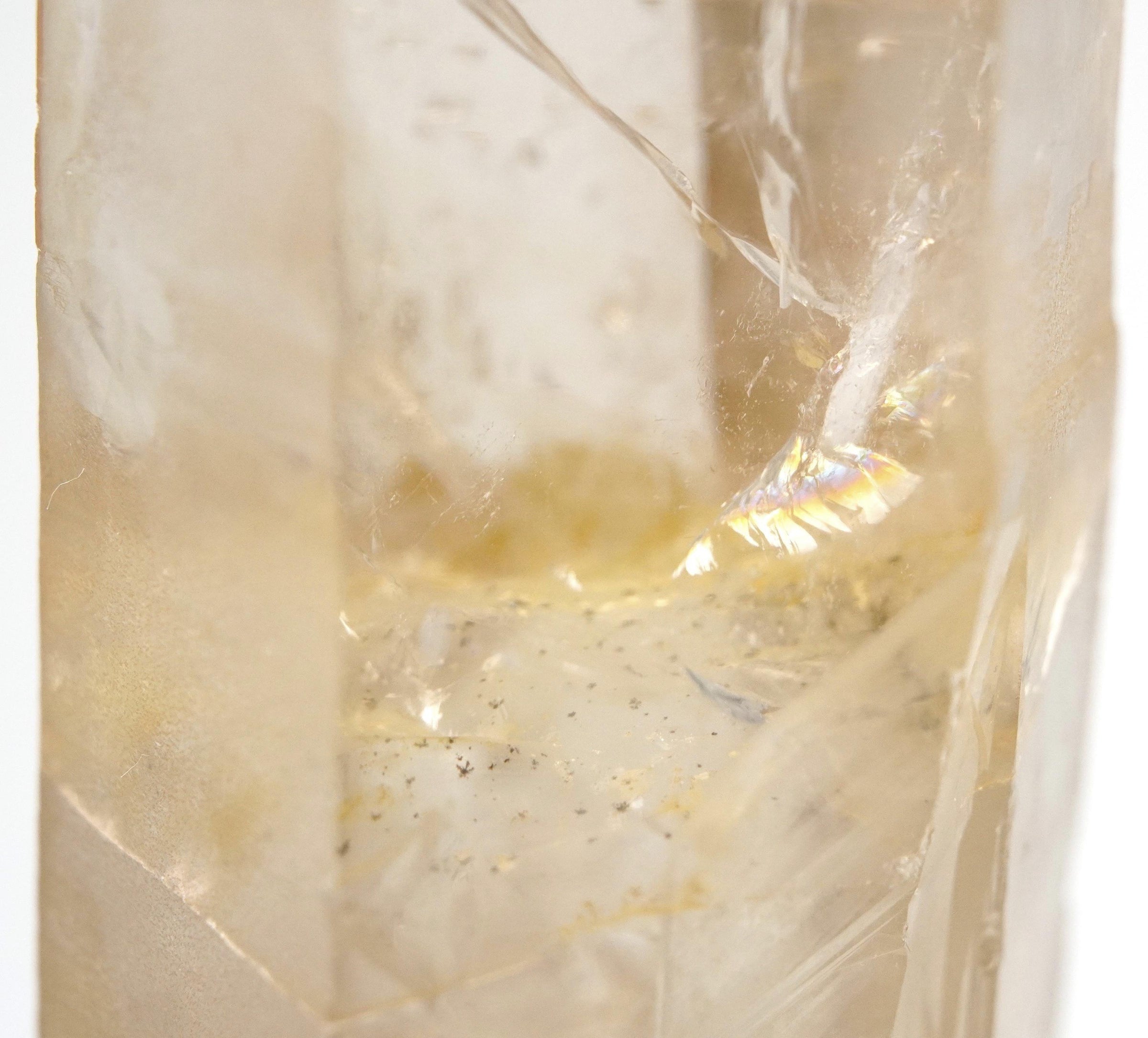This is a large, bright and perfectly formed Golden Lemurian Channelling Rainbow crystal.
