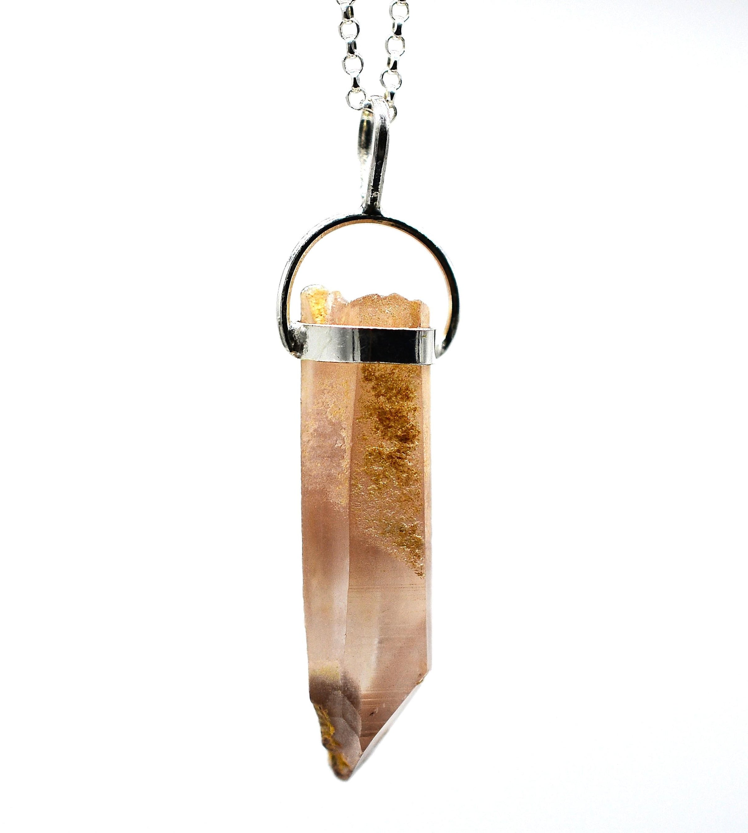 Lithium Quartz Phantom Silver Pendant: Ethically Mined Natural Crystal for Calm