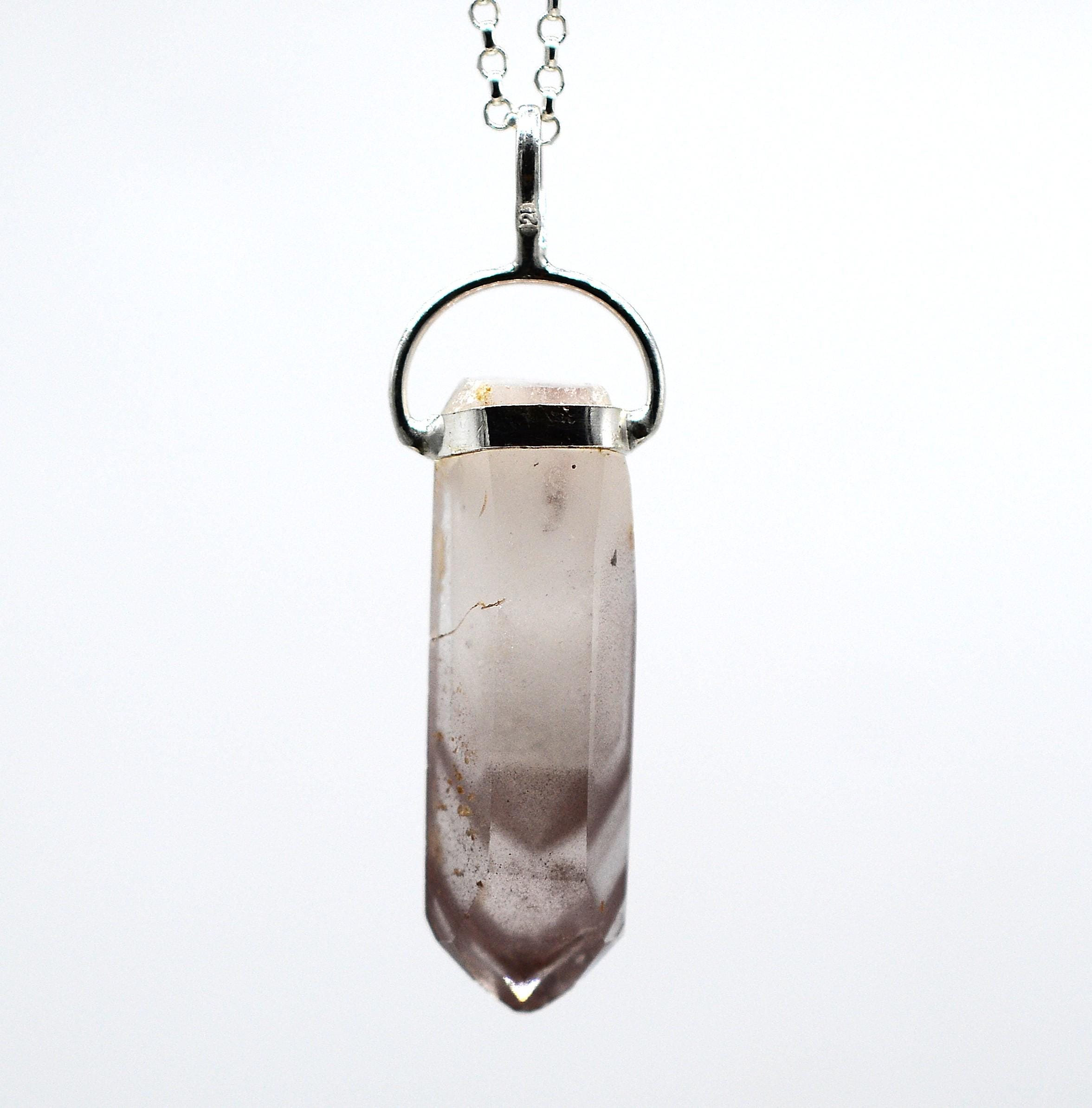 Lithium Quartz Phantom Silver Pendant: Ethically Mined Natural Crystal for Calm