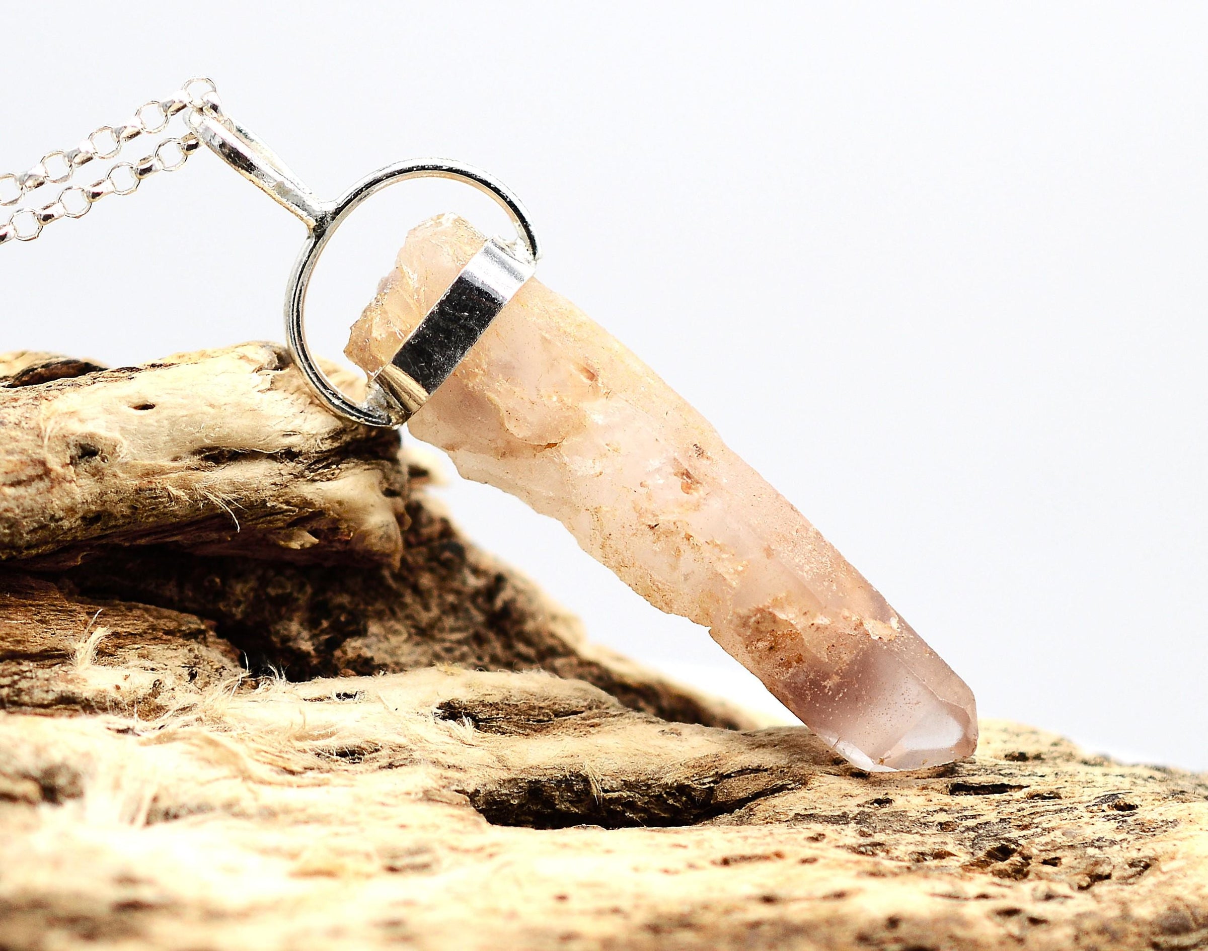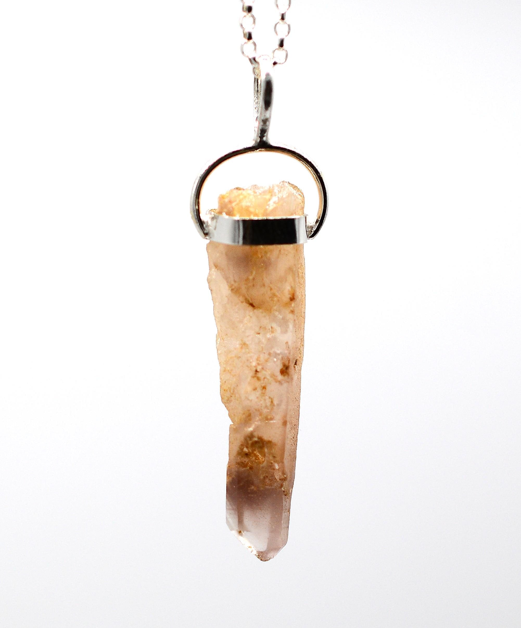Lithium Quartz Phantom Silver Pendant: Ethically Mined Natural Crystal for Calm