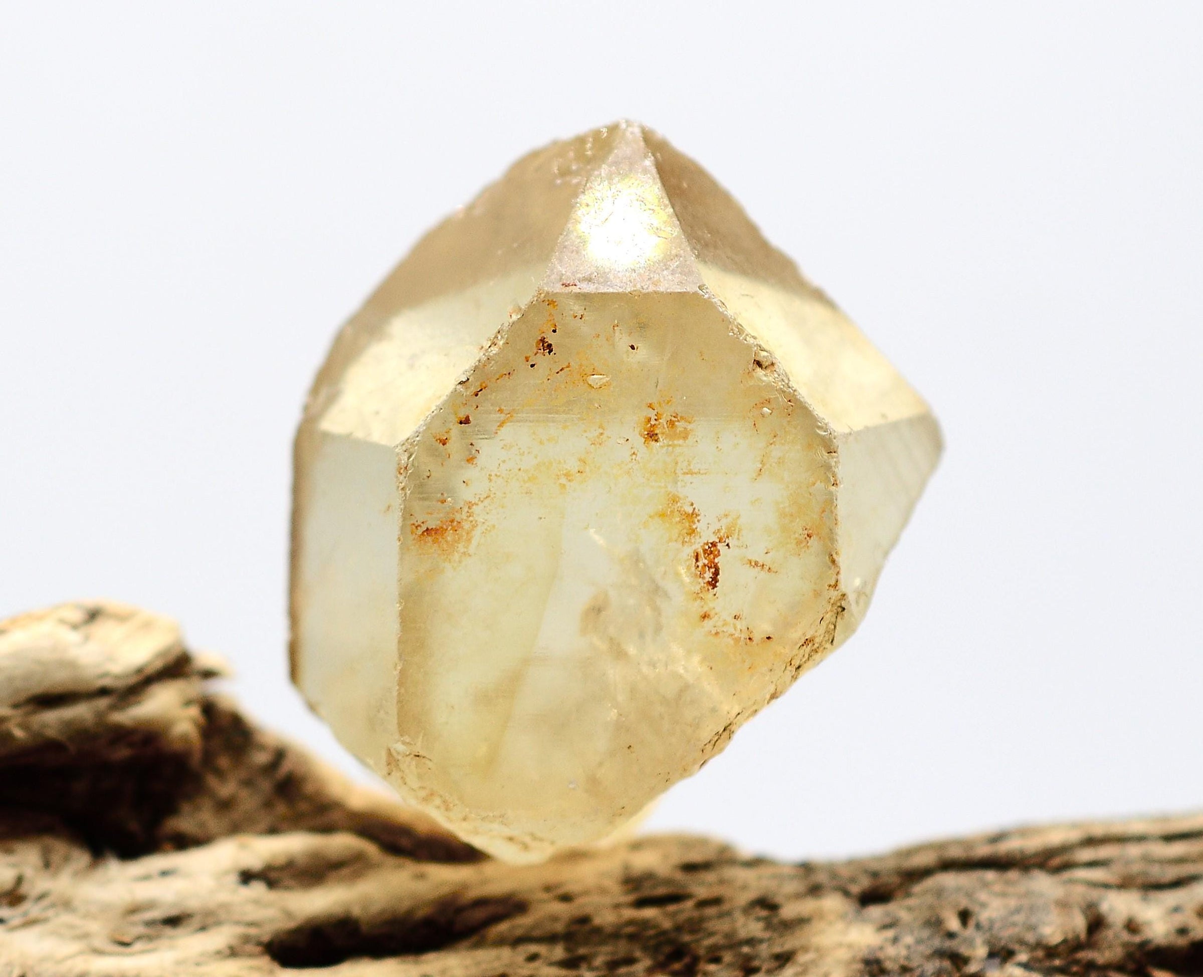 Most 'citrine' is heat-treated Amethyst. This crystal is guaranteed to be natural Citrine, with the same colour as when it was hand-mined. All Congo Citrine has a few dings, as shown in the images.