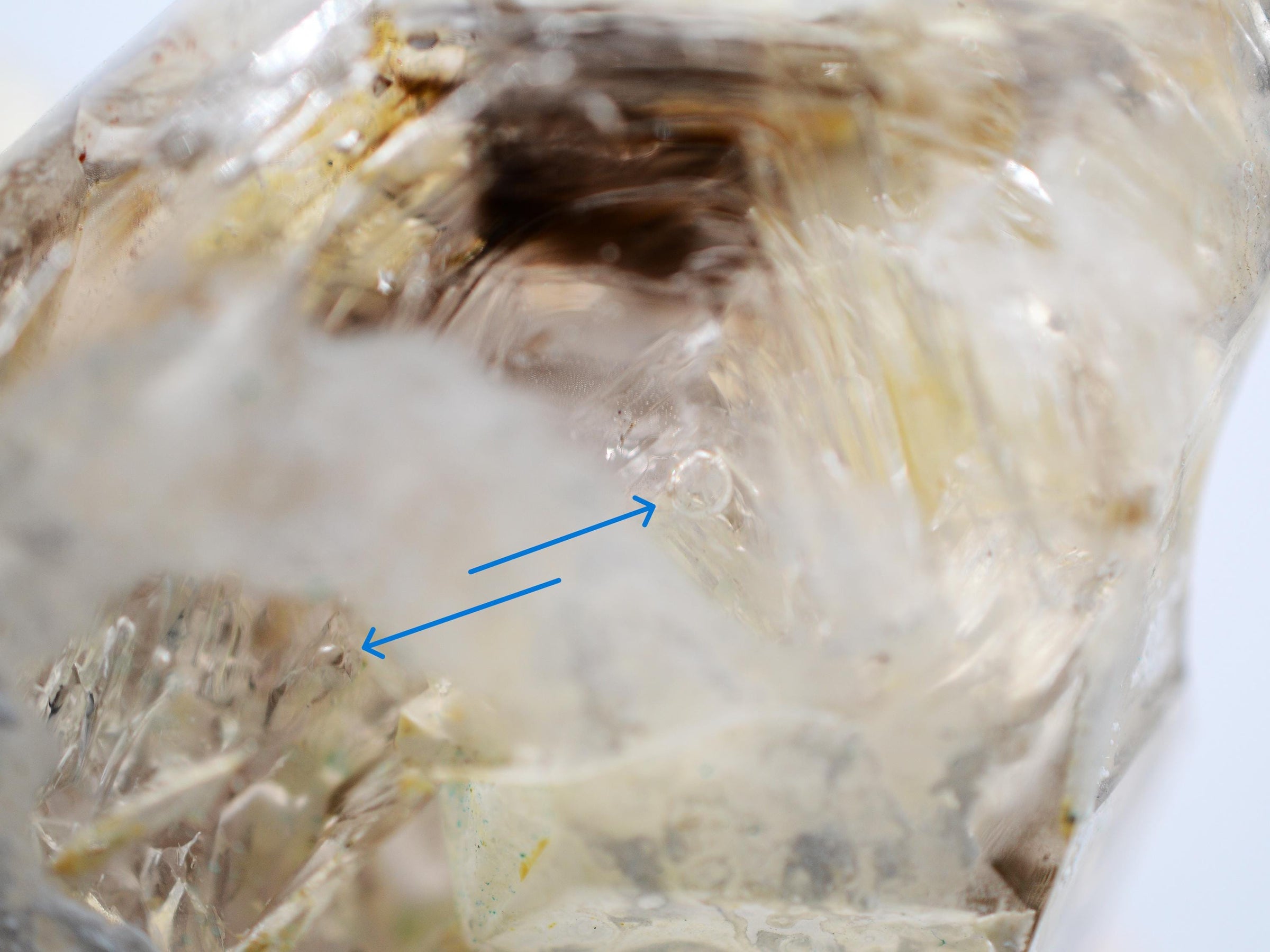 Several stationary and moving bubbles are present; some are marked in the images to help you find them. There are black phantoms, red lepidicrocite Harlequin flecks, black phantoms and self-healing. At 1/3 of a kilo, it's also very large for an Omapeleki.