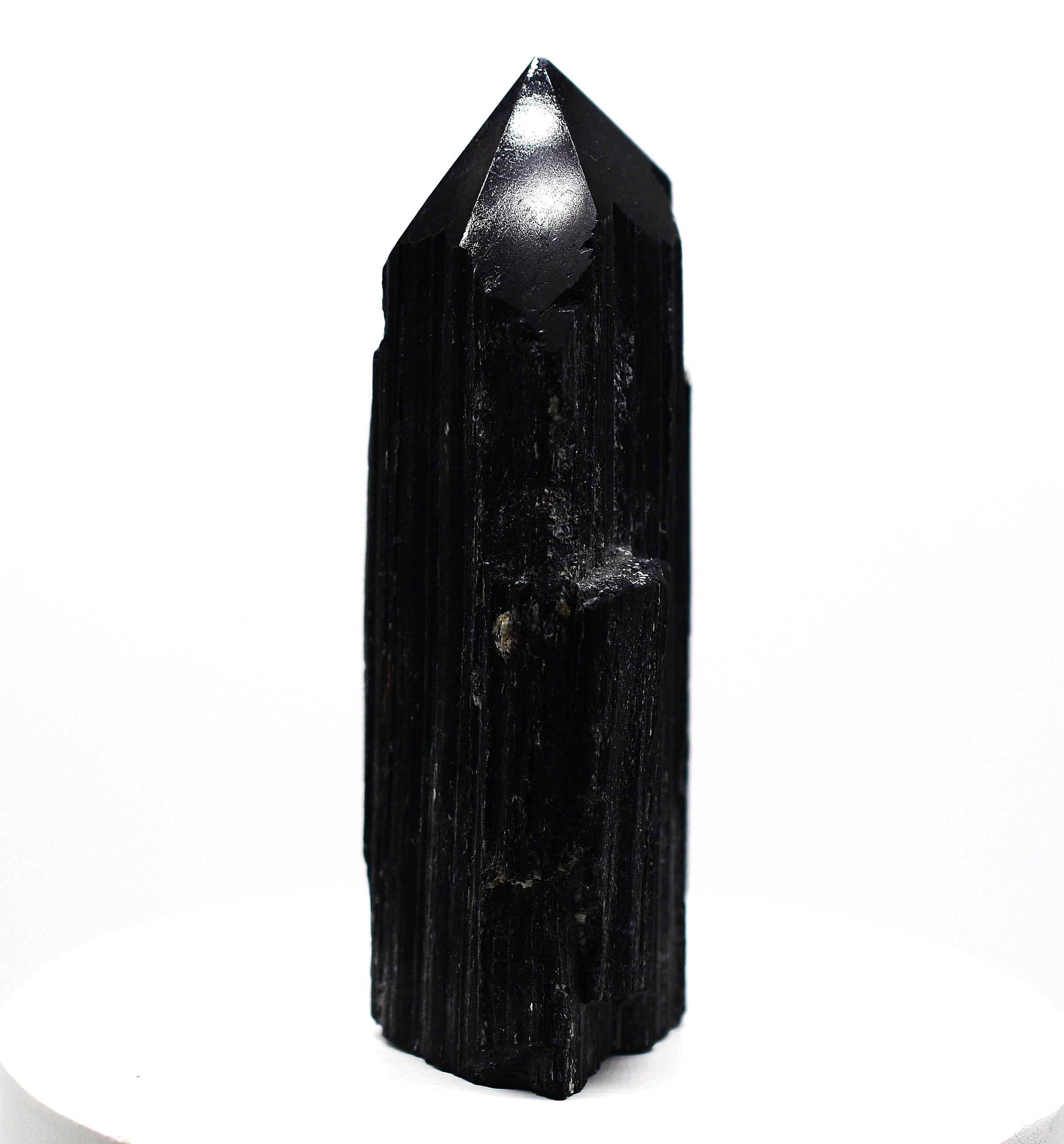 A good-sized semi-polished natural Black Tourmaline crystal. You receive the exact crystal pictured.
