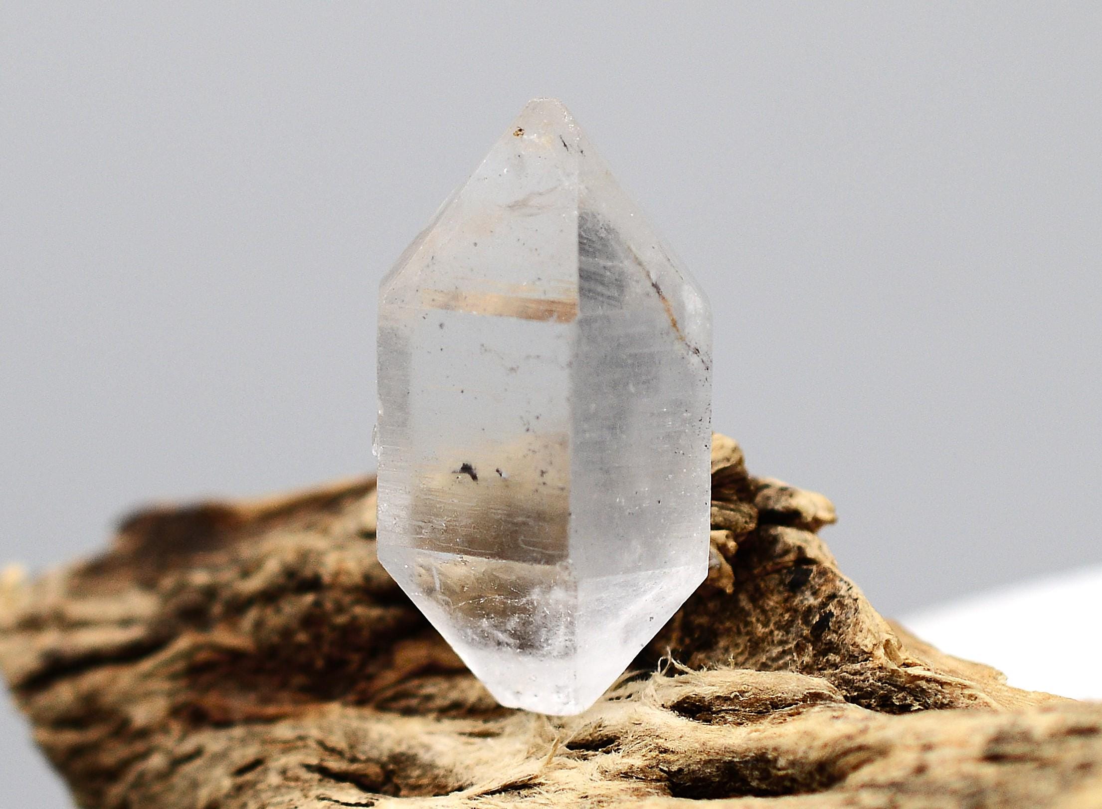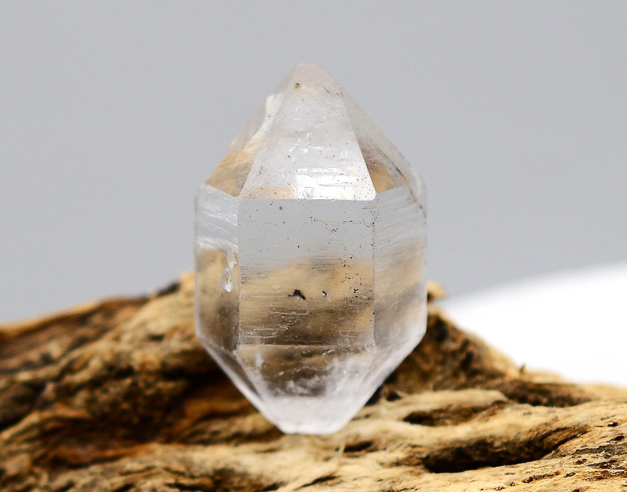 "Tibetan Quartz occurs in single and double terminations and may have "black spot" inclusions within it. Carrying the generic properties of Quartz and the resonance of Tibet and ancient esoteric knowledge, it accesses the Akashic Record and is extremely useful for ascertaining past-life reasons for disease or the karmic lessons being dealt with in the present life. Beneficial if held by a healer or past-life therapist while working with a client, Tibetan Black Spot Quartz has strongly centred energy that passes into the body and the personal self, bringing about deep healing of the aura and etheric blueprint and creating multidimensional cellular regeneration." Judy Hall, The Encyclopedia of Crystals.