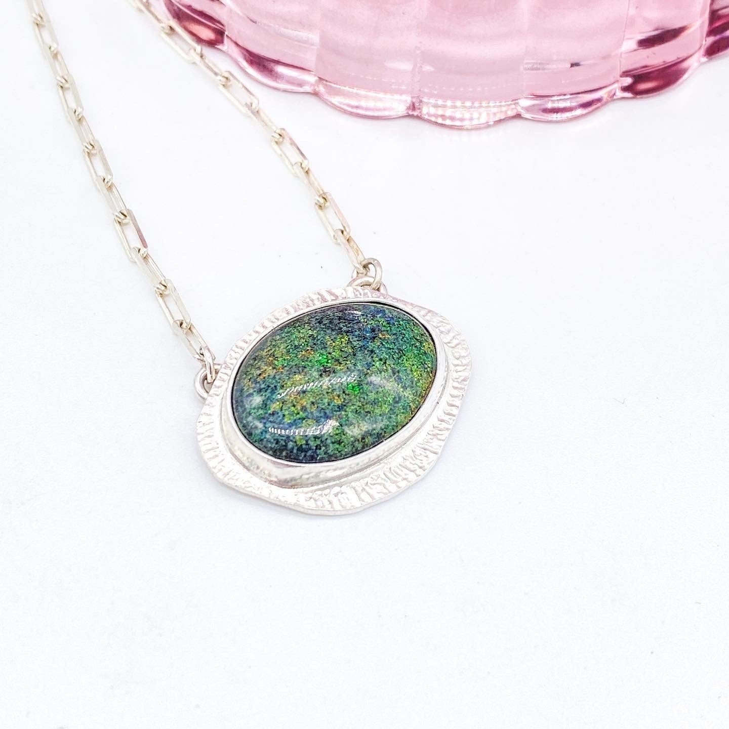 Handmade Opal Sterling Silver Heart Necklace: Ethically Mined Australian Opal