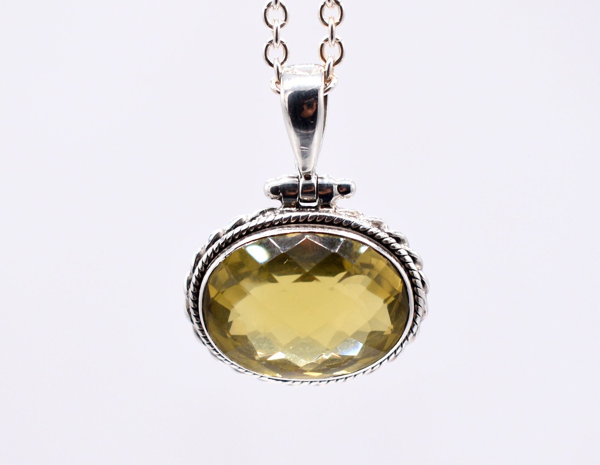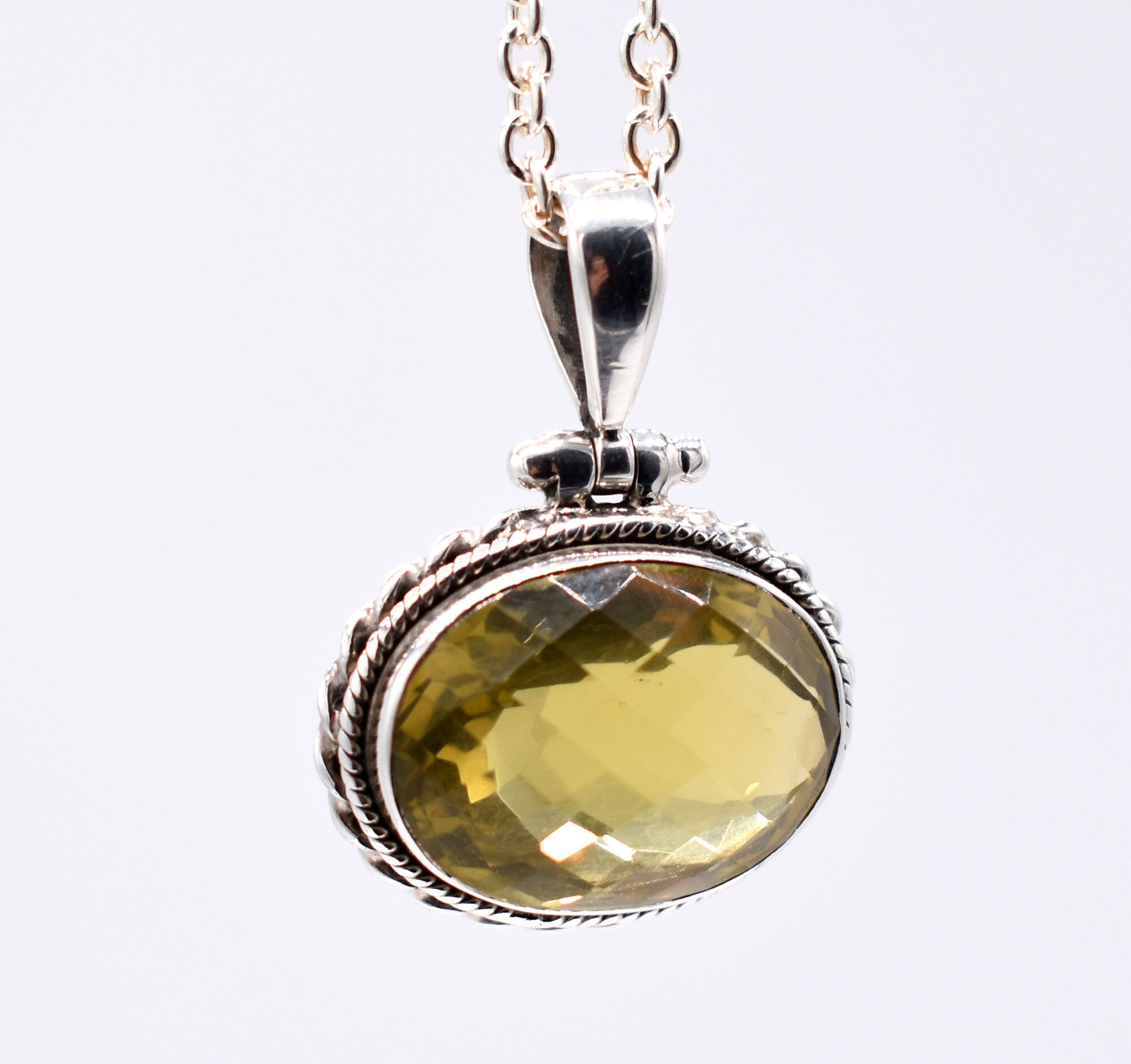 A large and seriously beautiful golden Citrine set in sterling silver with a swivel bale and classical silverwork. A thing of beauty!